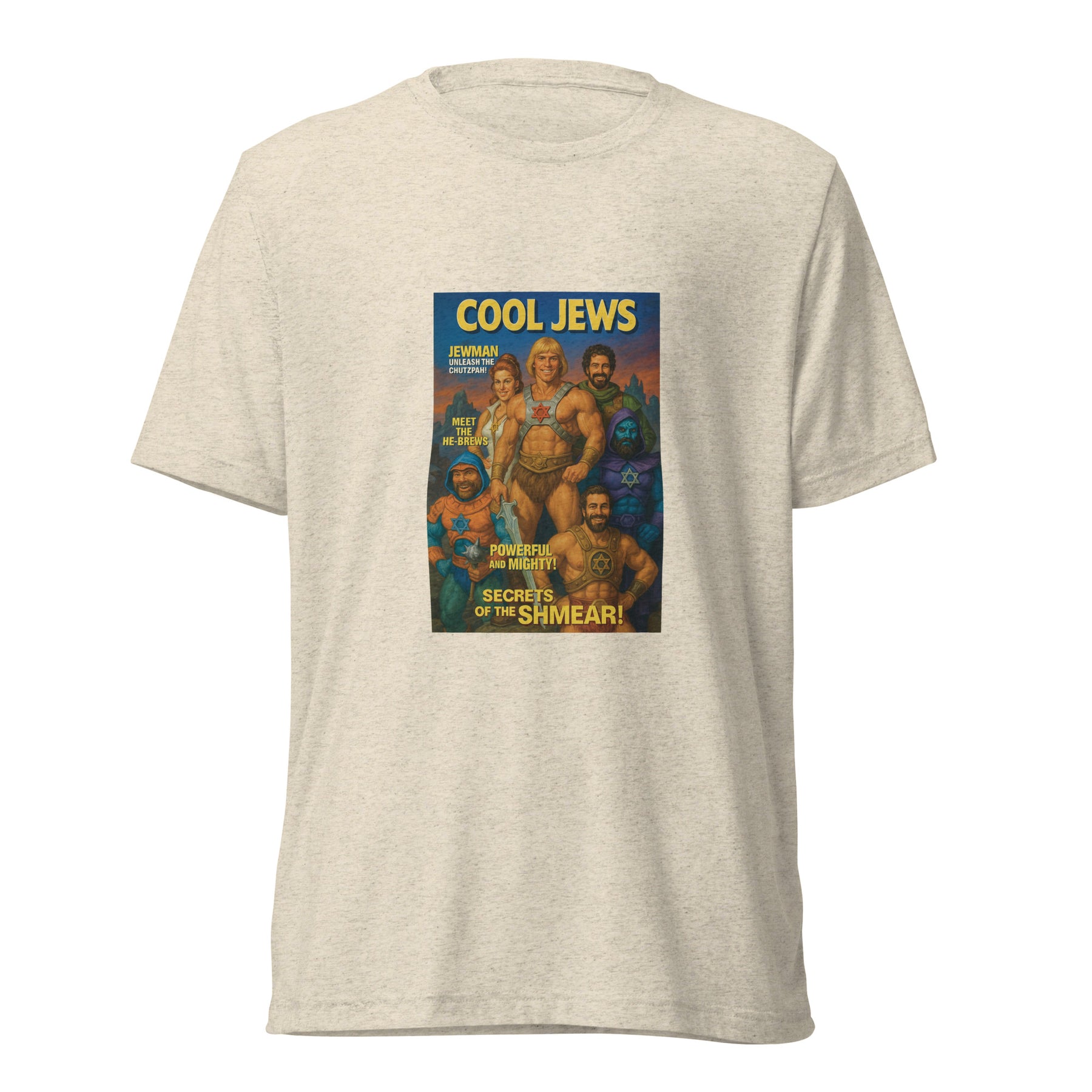 Ultra-soft. Boldly Jewish. Infused with humor. The Cool Jews | He‑Brews Edition tri-blend t-shirt blends comfort, style, and heritage in one iconic piece. Featuring Jewman and The He-Brews in a comic-style graphic, this shirt is a celebration of Jewish strength, humor, and pride. The breathable tri-blend fabric makes it perfect for everyday wear, from Shabbat to streetwear.