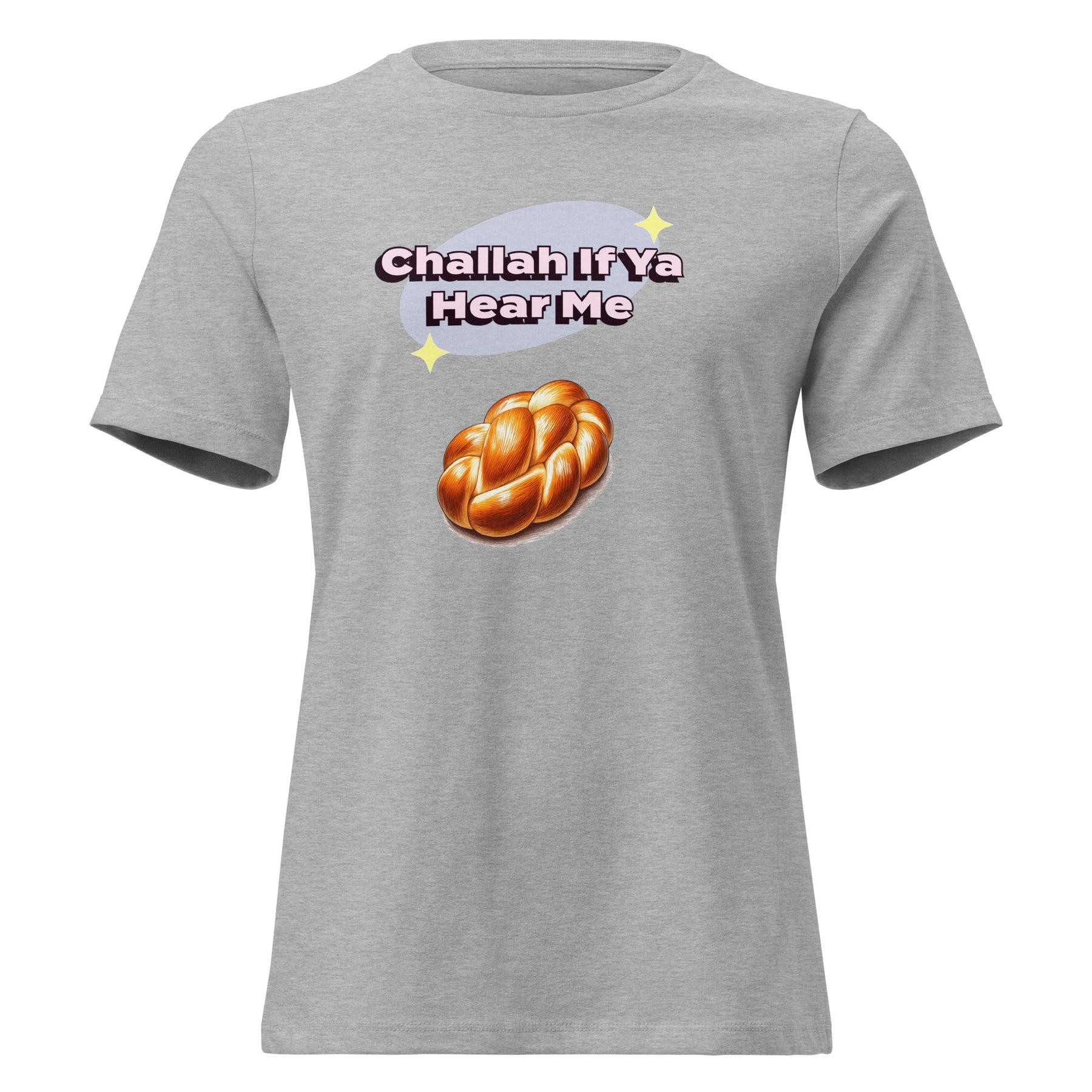 Soft, witty, and full of Jewish flavor — the “Challah If Ya Hear Me” Women’s Relaxed T-Shirt is the perfect blend of comfort and culture. Whether you’re kneading dough on Friday afternoon or just bringing that Shabbat spirit into your everyday style, this tee makes your pride and humor unmistakable.