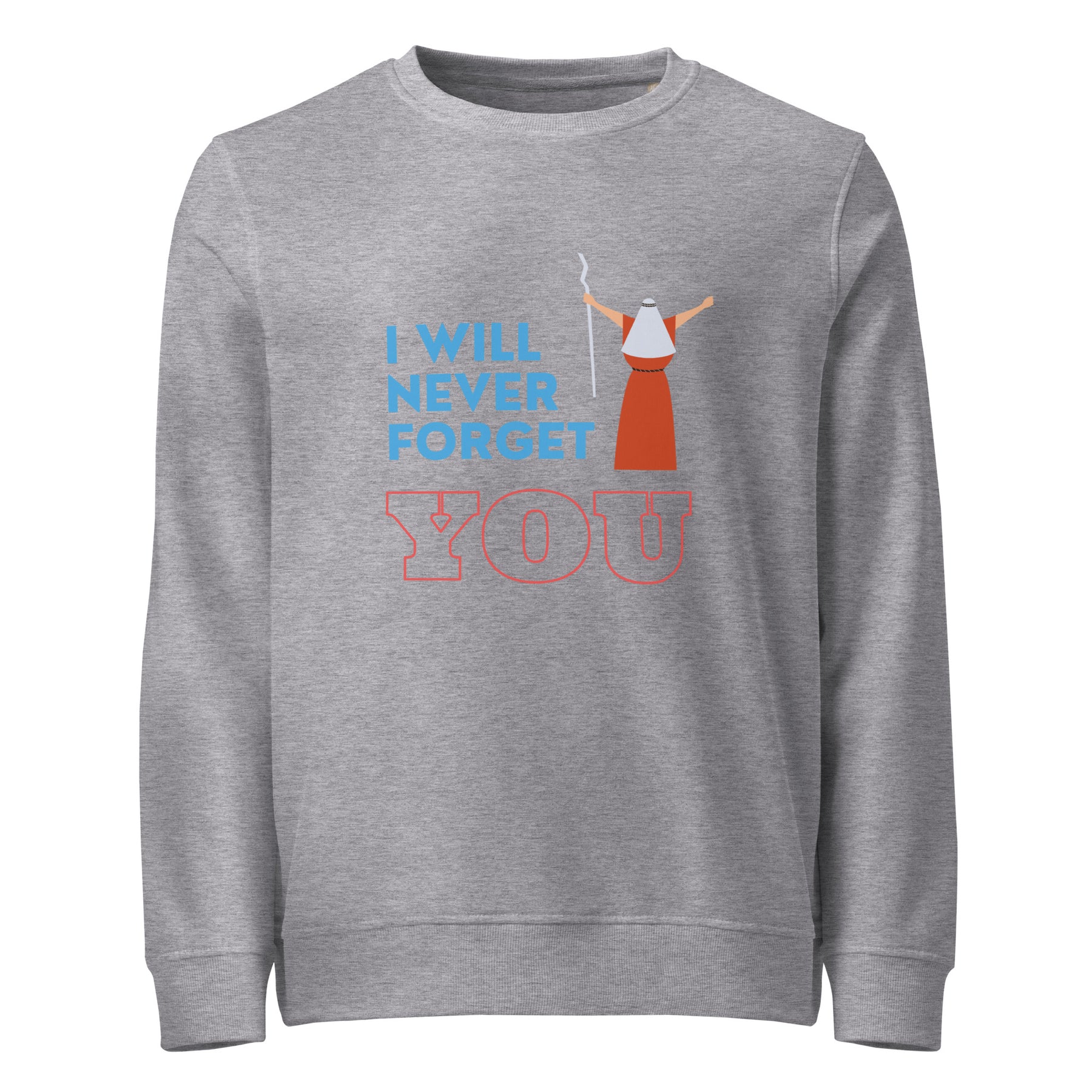 Some memories are carried gently, every day. The I Will Never Forget You Organic Sweatshirt is a meaningful Jewish remembrance sweatshirt created to honor love, loss, and enduring memory. Rooted in Jewish tradition of remembrance, the message is quiet, sincere, and timeless.