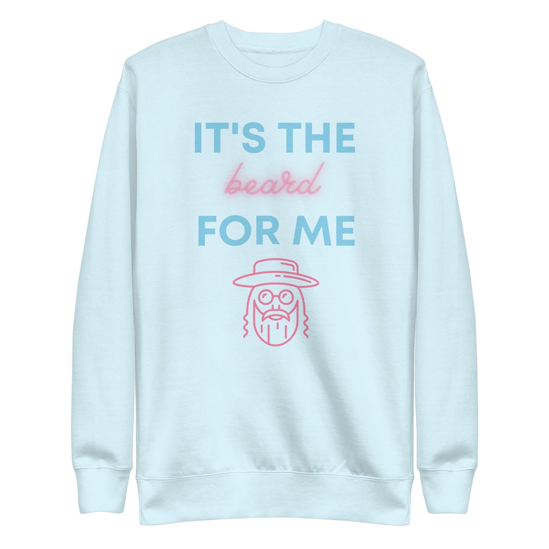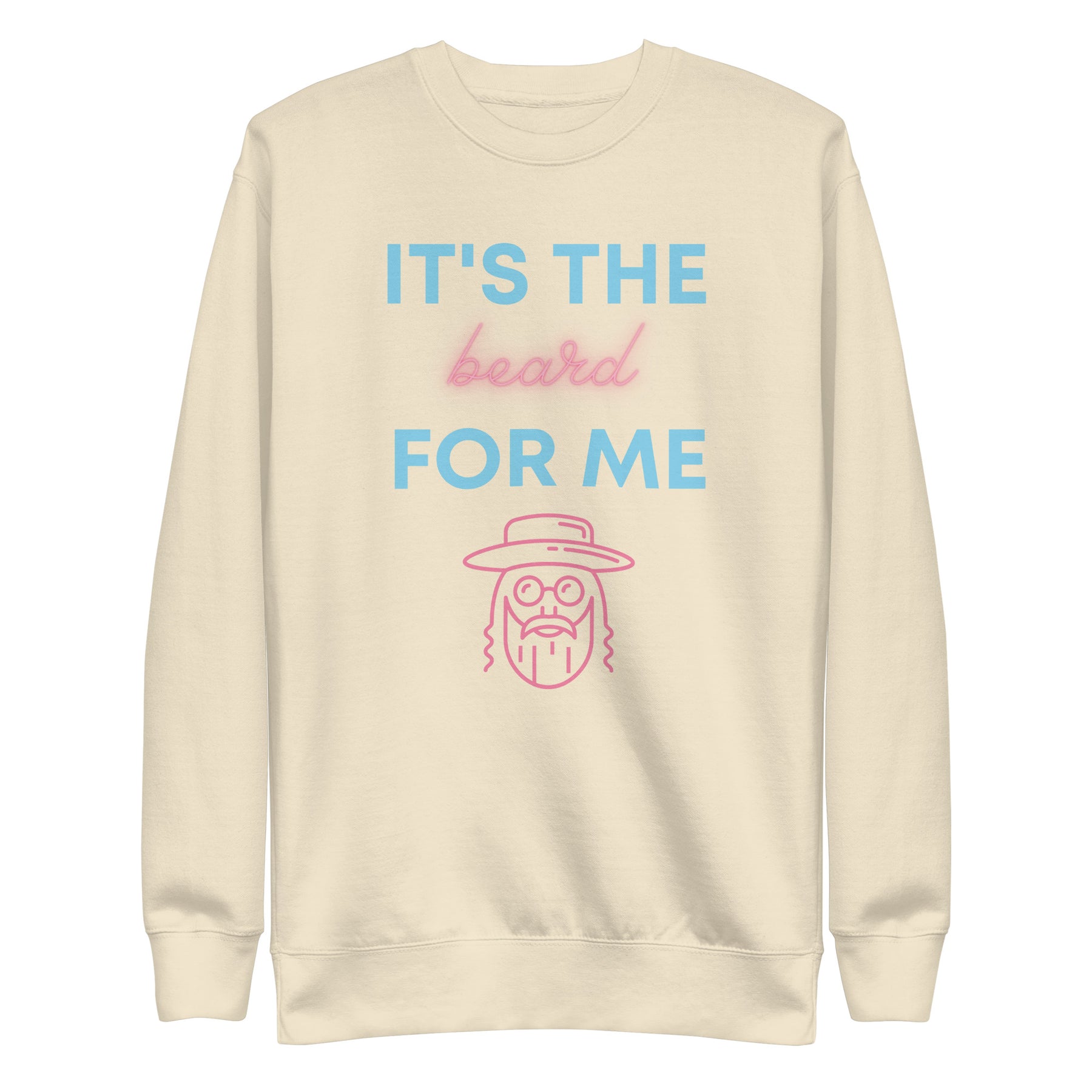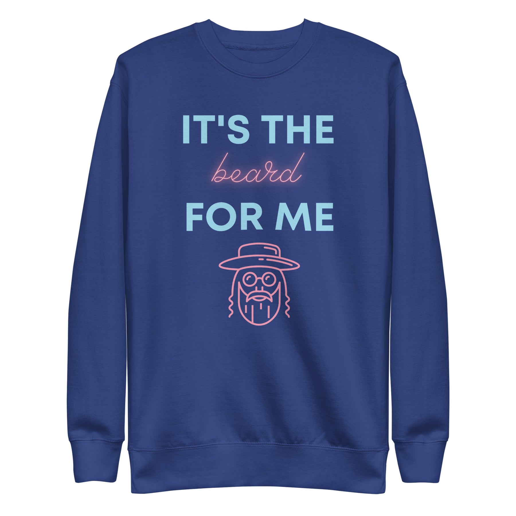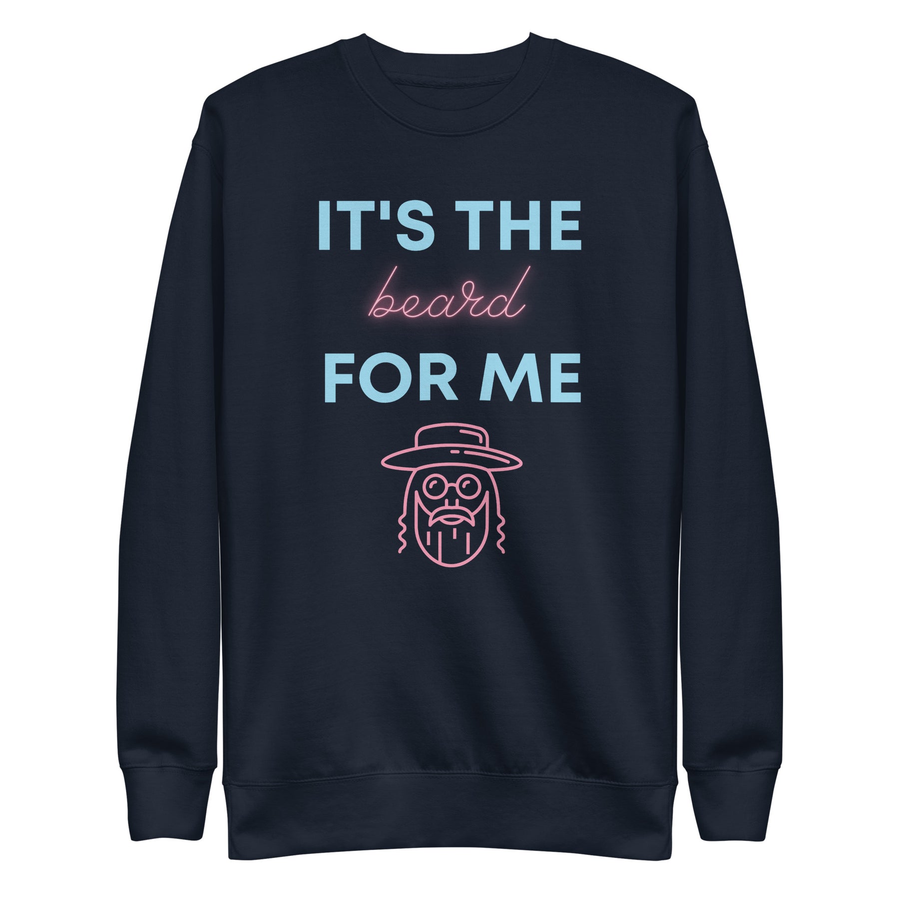 If you’re looking for a funny Jewish sweatshirt, an It’s The Beard For Me sweater, a Jewish humor sweatshirt, a Hasidic beard design, or a unique Jewish gift idea, this one fits right in.