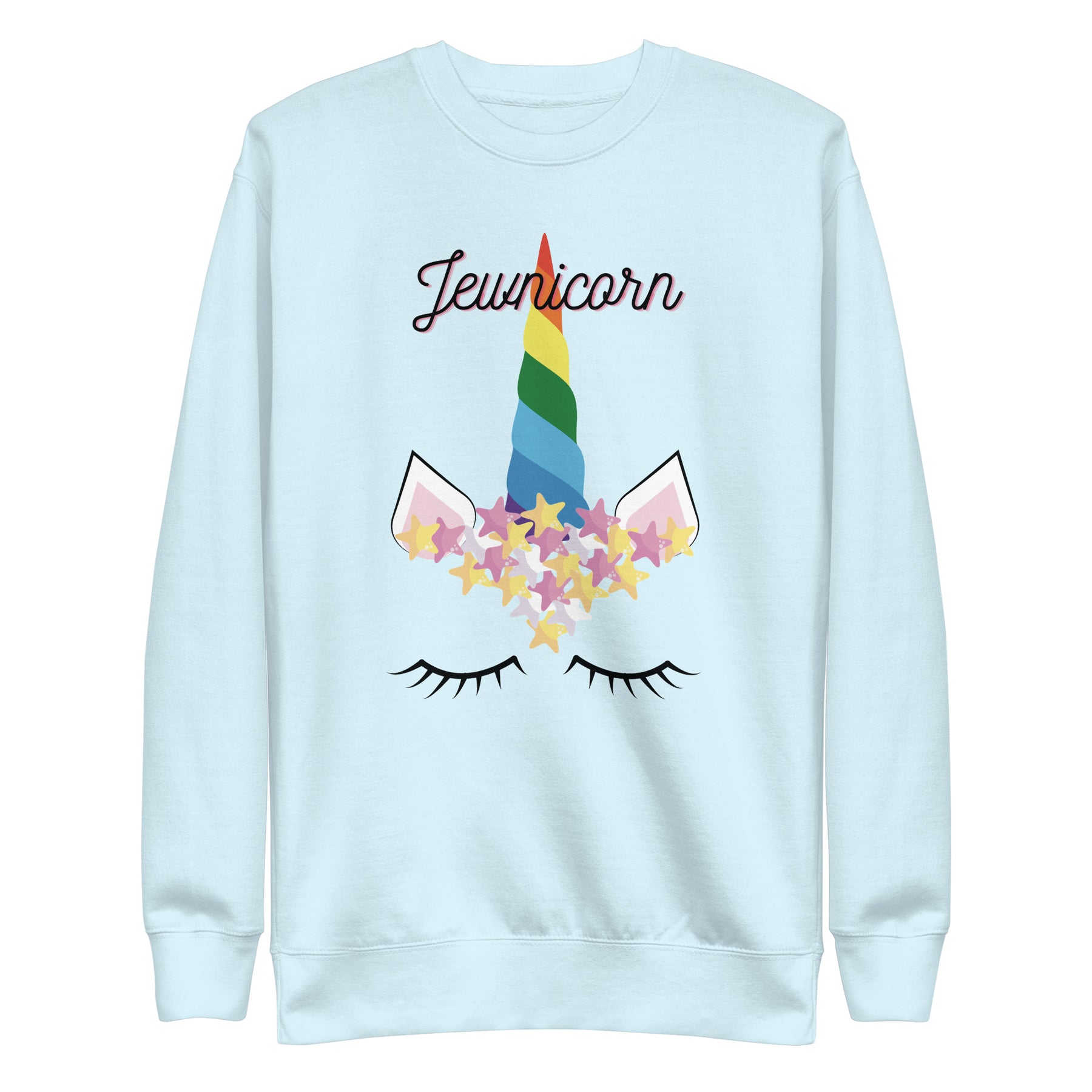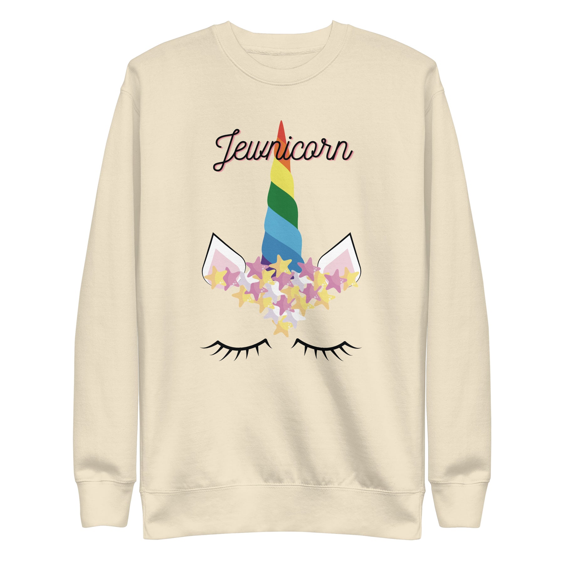 Stay warm, stay bold, and stay you with the Jewnicorn Premium Sweatshirt — where Jewish pride meets unicorn-level magic. This ultra-soft, high-quality crewneck brings comfort and personality together with a playful design that features a unicorn and a Star of David. Whether you’re repping your roots at Shabbat dinner, Jewish summer camp, or just on a coffee run, this sweatshirt sparks connection and conversation.