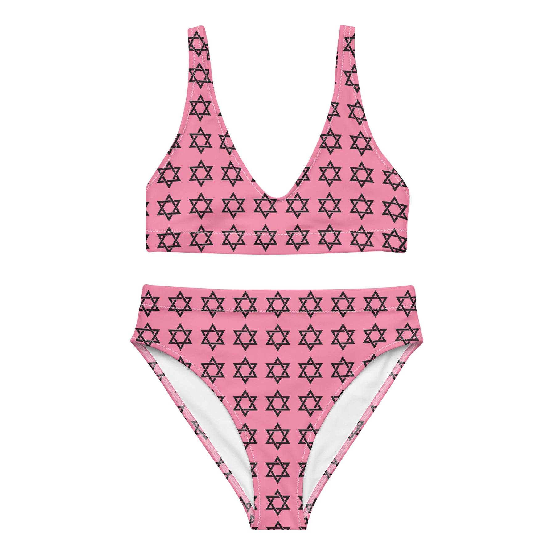 Rock the beach with our Recycled High-Waisted Bikini in Magen Davids All Over Print! 🌟👙 Flaunt your Jewish pride while staying eco-friendly. Perfect for making a stylish splash this summer! 🌊♻️