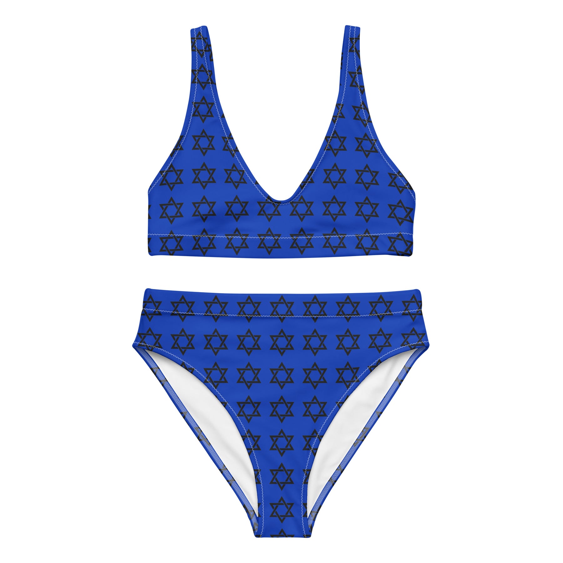 Rock the beach with our Recycled High-Waisted Bikini in Magen Davids All Over Print! 🌟👙 Flaunt your Jewish pride while staying eco-friendly. Perfect for making a stylish splash this summer! 🌊♻️