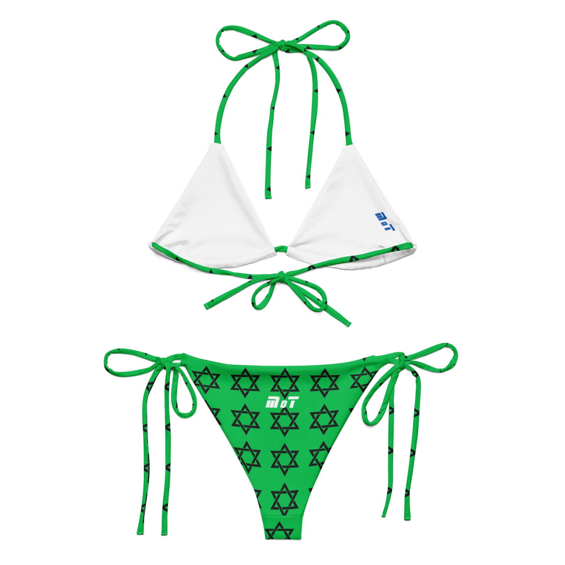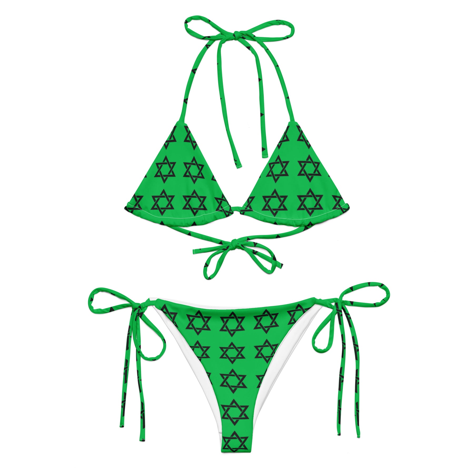 Make waves with our Recycled String Bikini in Magen Davids All Over Print! ✡️👙 Show off your Jewish pride and stay eco-friendly. Perfect for a stylish and sustainable beach day! 🌊♻️