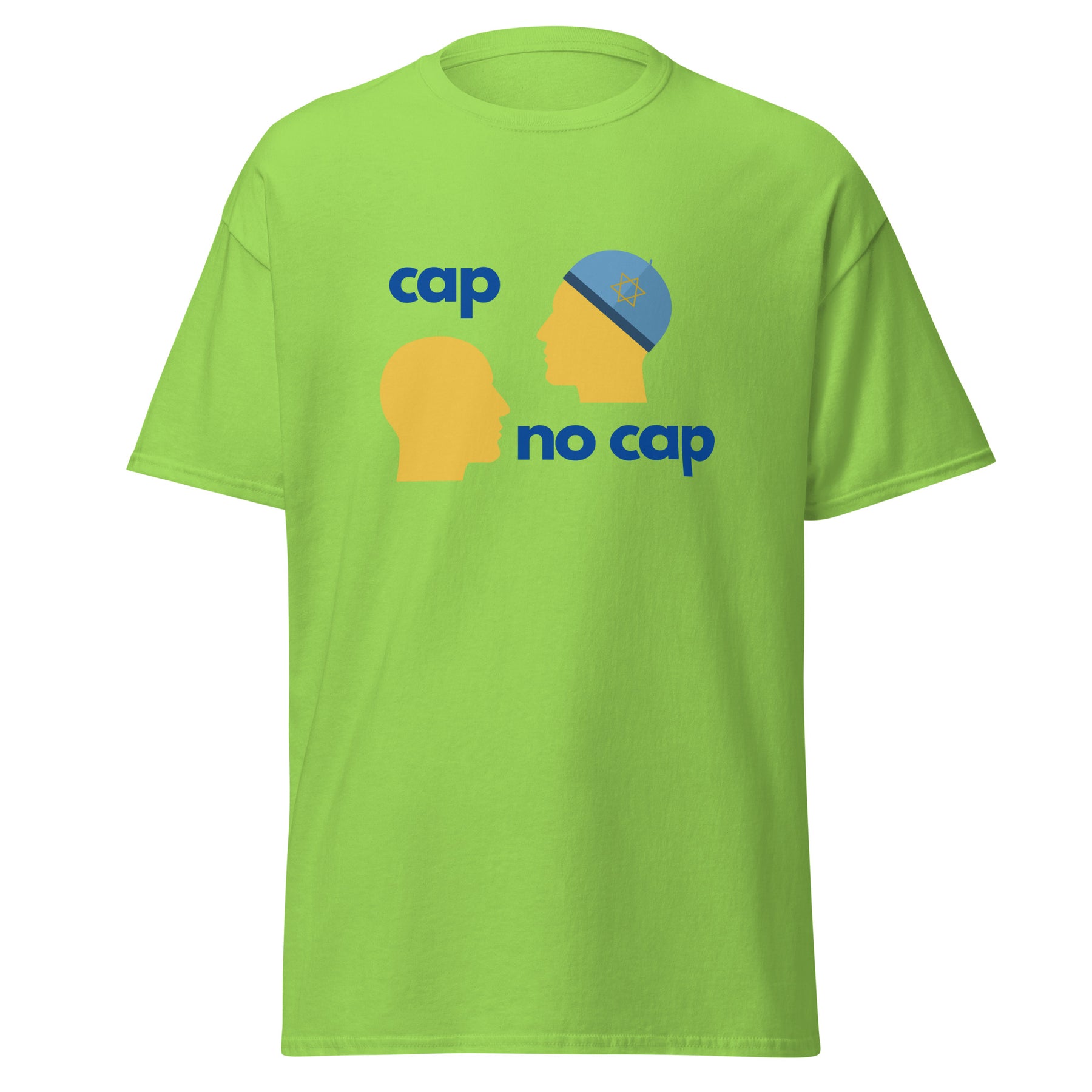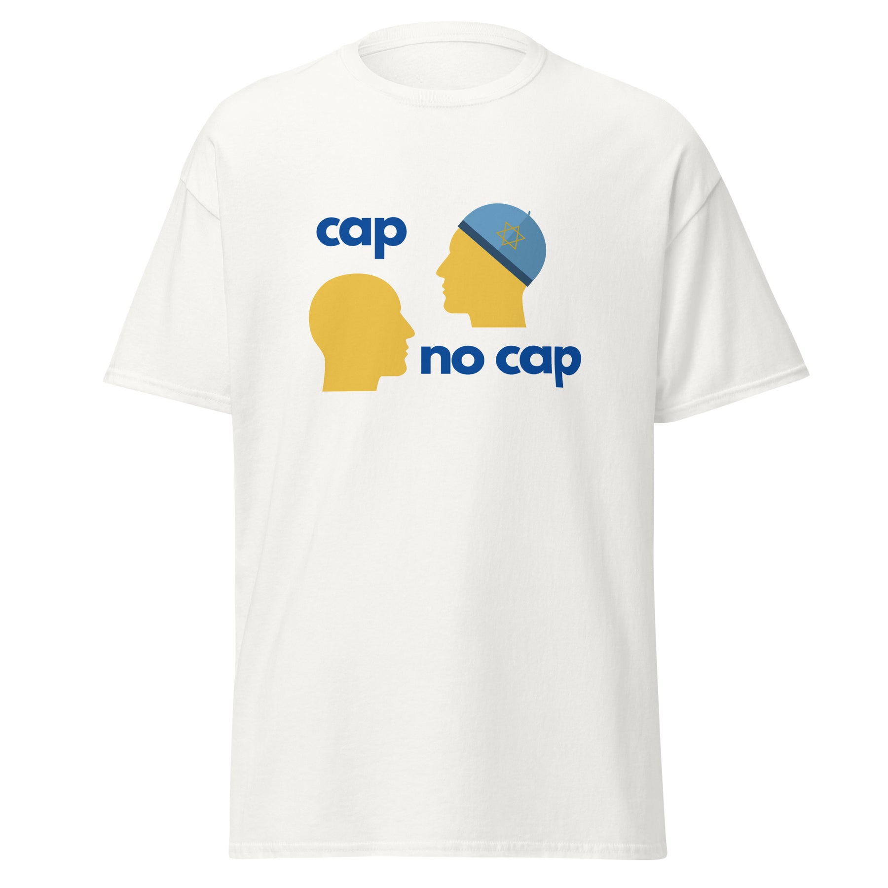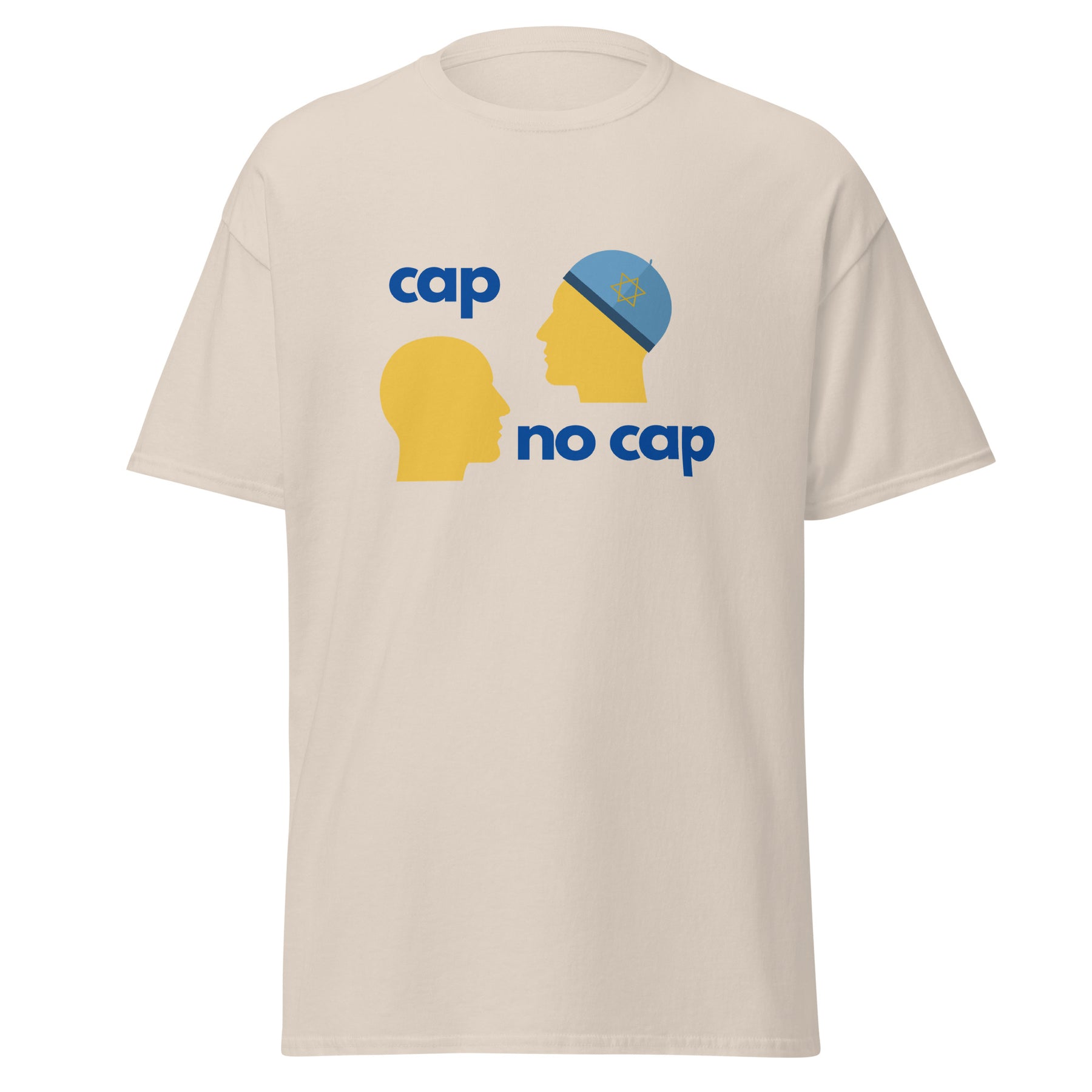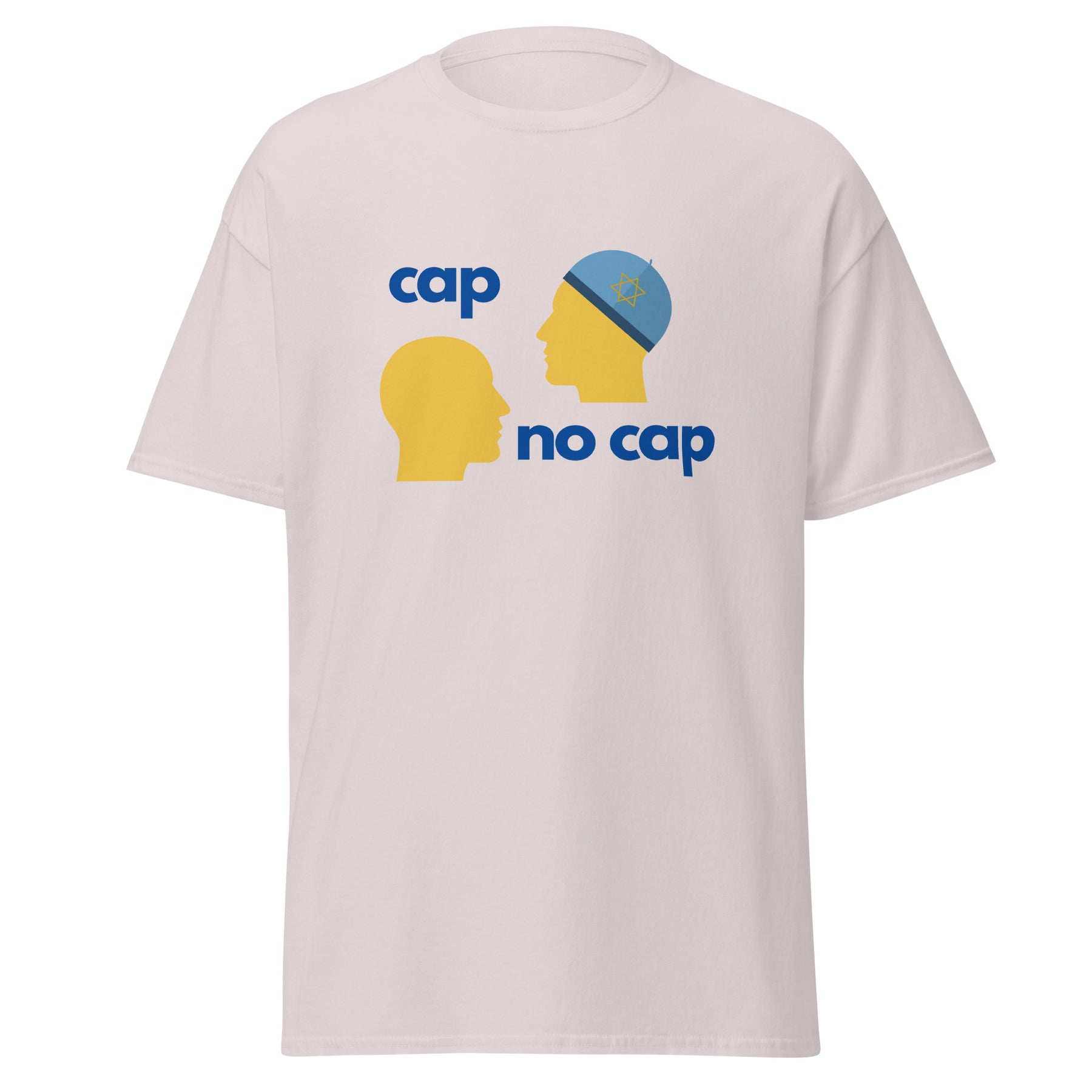 Say it once. Say it clearly. The Cap No Cap Classic Tee plays on the phrase everyone knows, with a clever Jewish twist. Cap on, cap off, truth stays the same. Simple, smart, and instantly recognizable.
