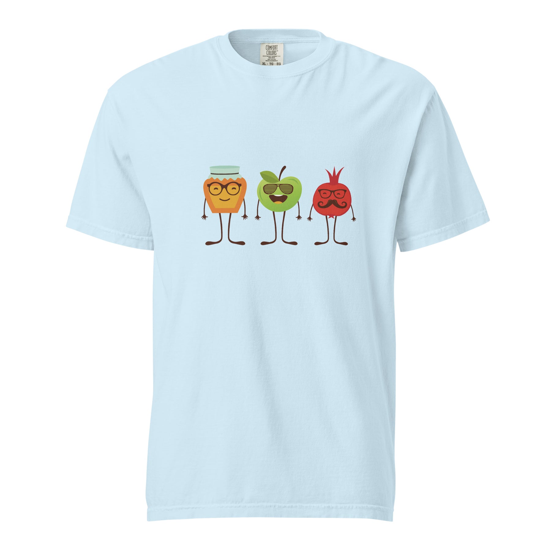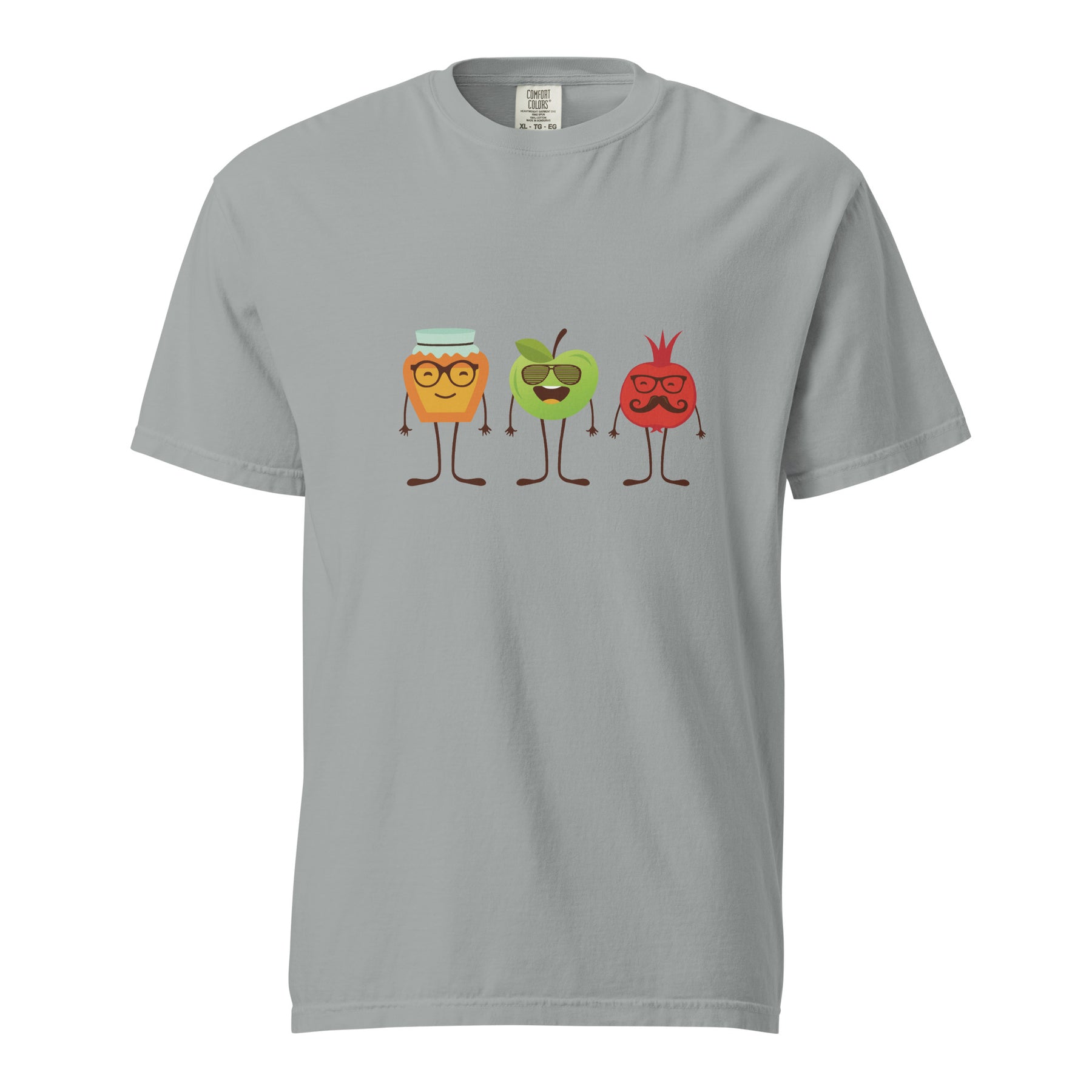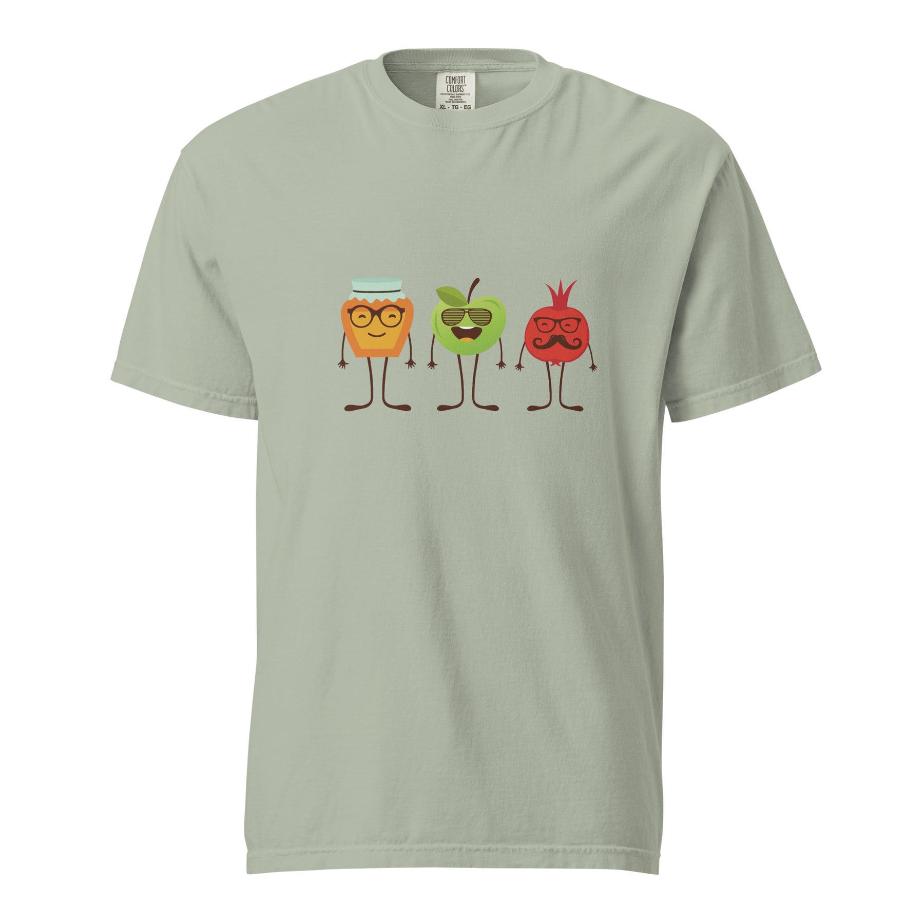 Celebrate the Jewish New Year with a tee that feels as good as it looks. The Honey Apple Pomegranates Garment Dyed Heavyweight T-Shirt brings the sweetest Rosh HaShana trio to life — a jar of honey, a cheerful apple, and a stylish pomegranate, all decked out with cute faces and holiday charm. It’s playful, festive, and an easy way to show off your Shana Tova spirit.
