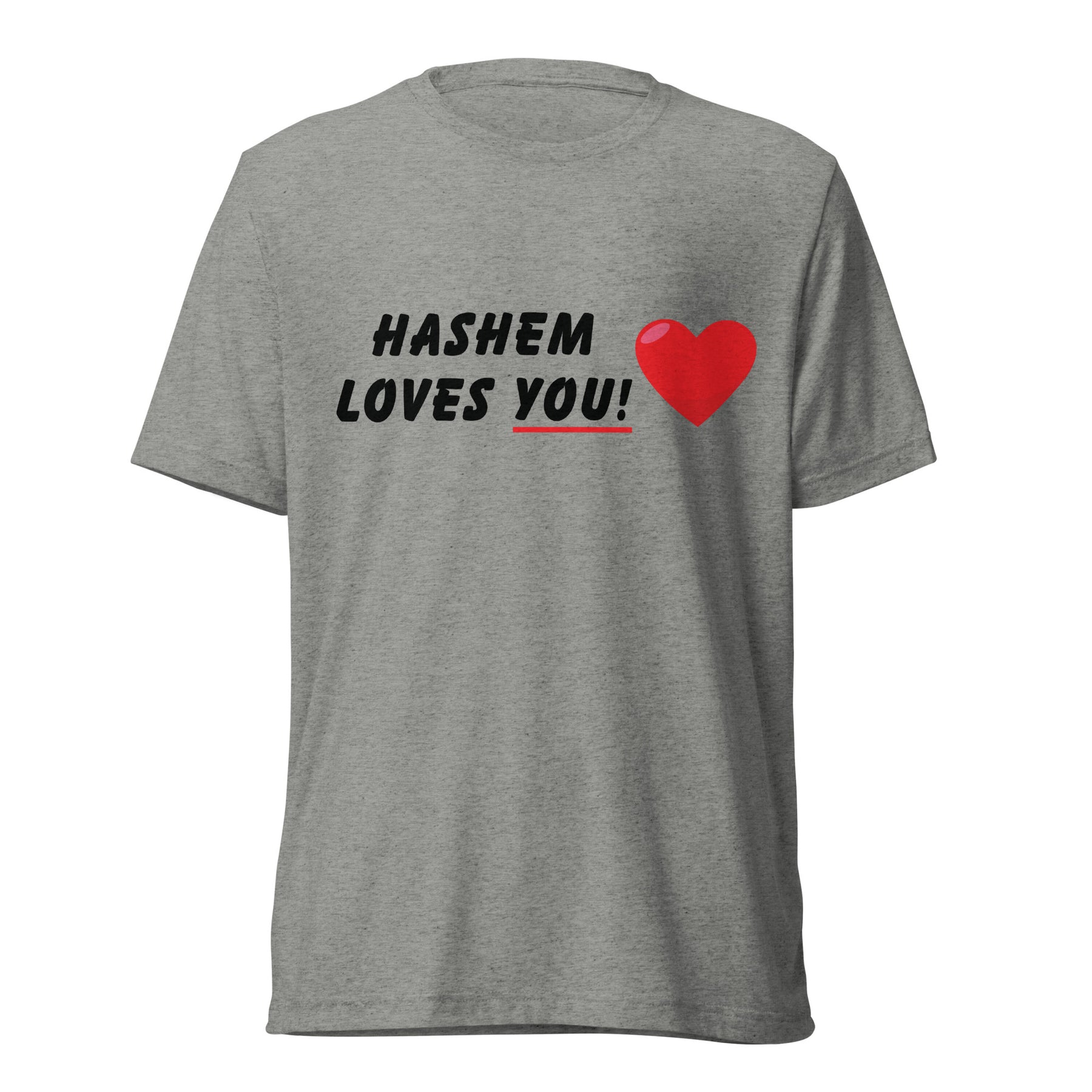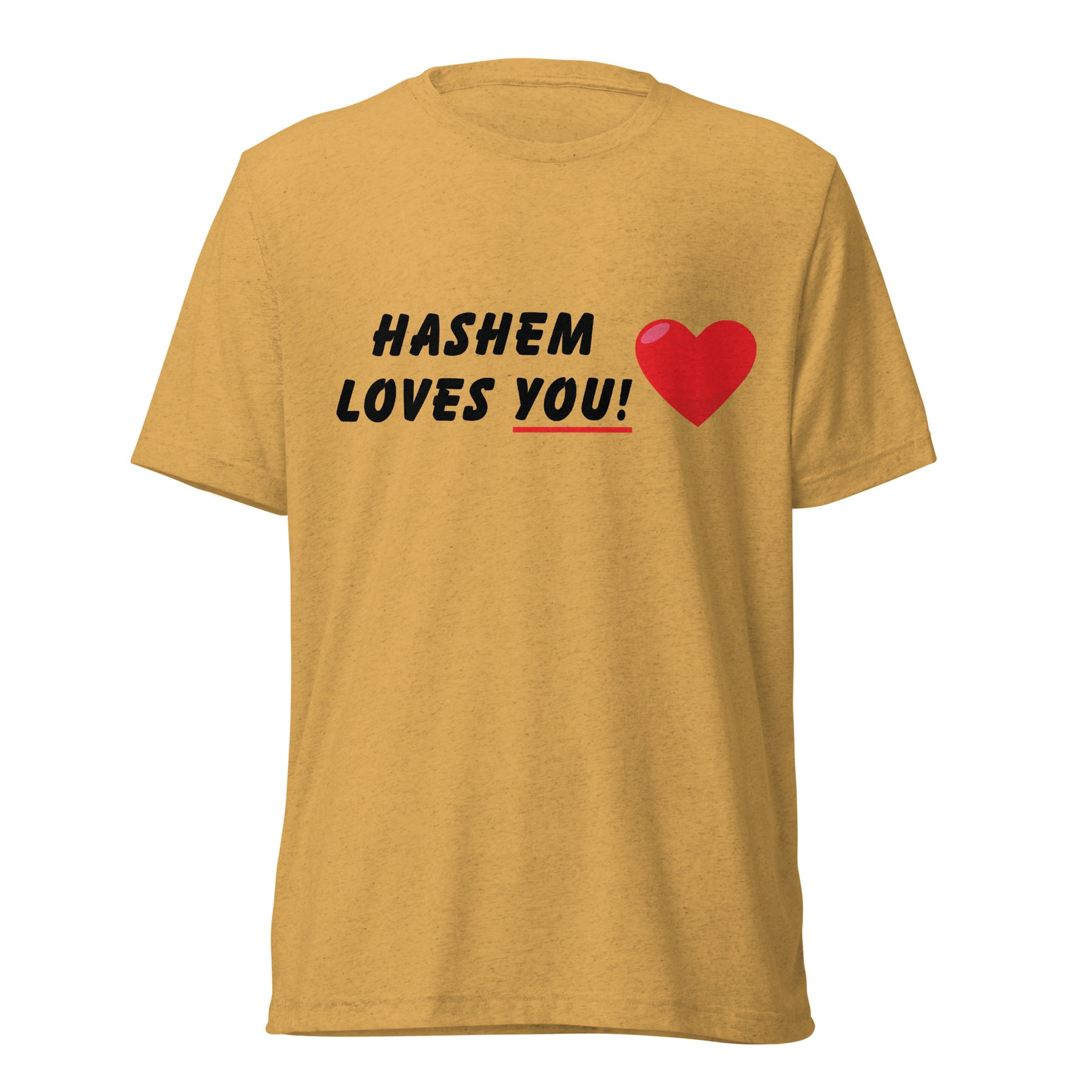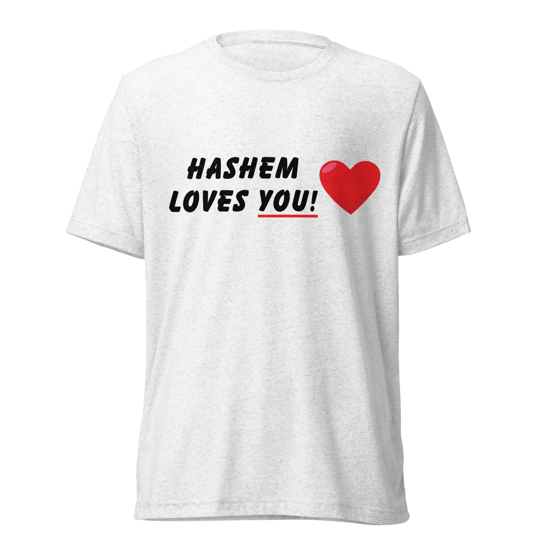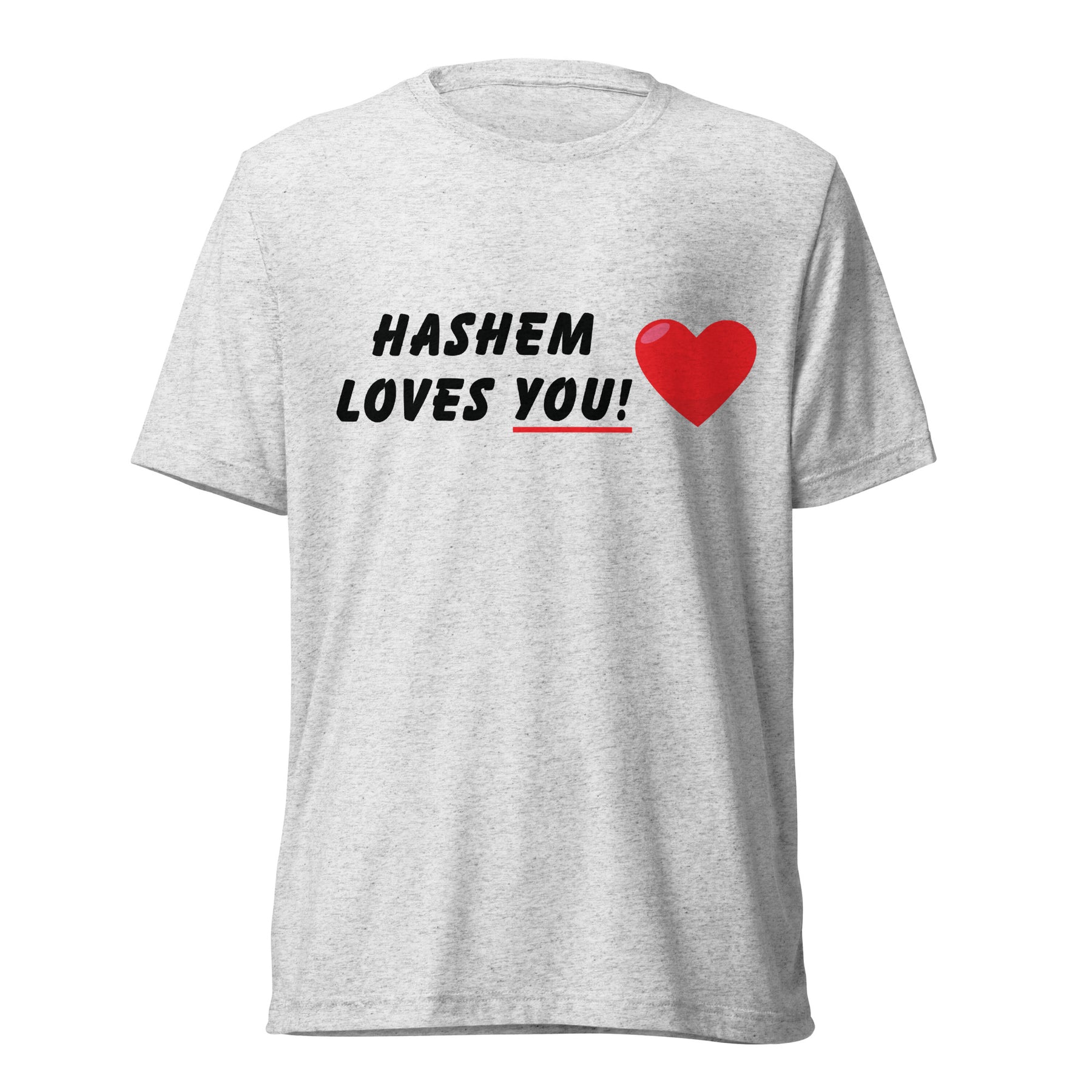 Soft, lightweight, and spiritually bold — the “HaShem Loves You” Tri-Blend T-Shirt is a timeless essential for anyone who wears their Jewish identity with confidence. Blending comfort and meaning, this shirt reminds the world (and yourself) that you are deeply loved by HaShem.
