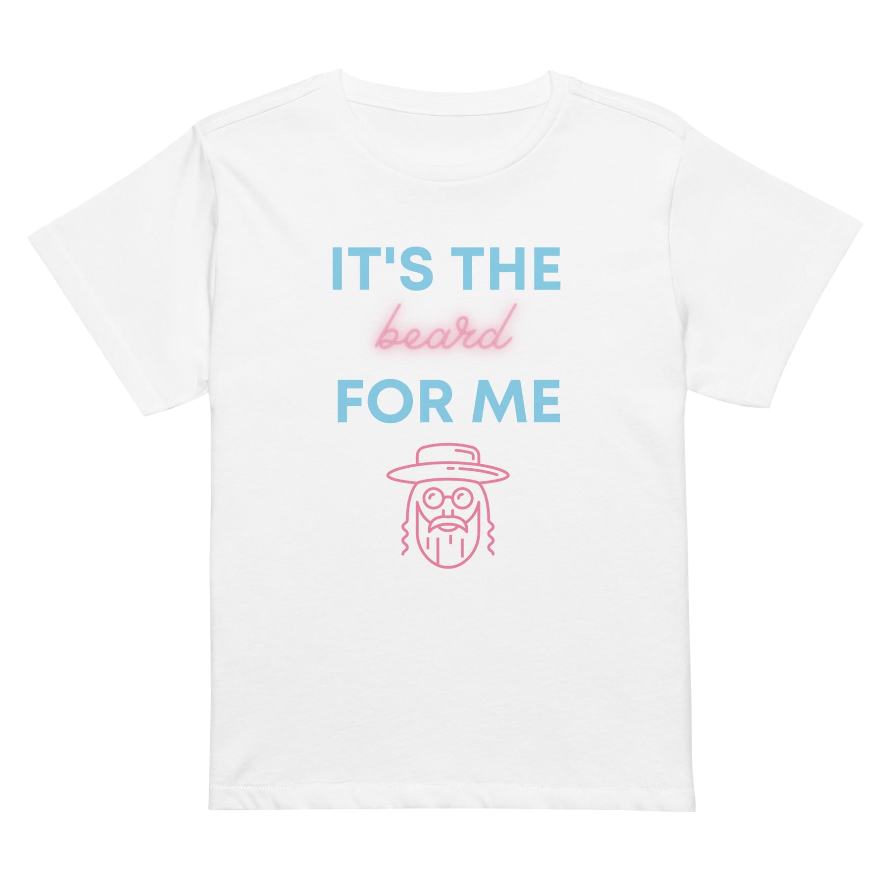 If you’re searching for a funny Jewish crop tee, an It’s The Beard For Me shirt, a Jewish humor top, a Hasidic beard design, or a playful Jewish gift idea, this one fits right in.
