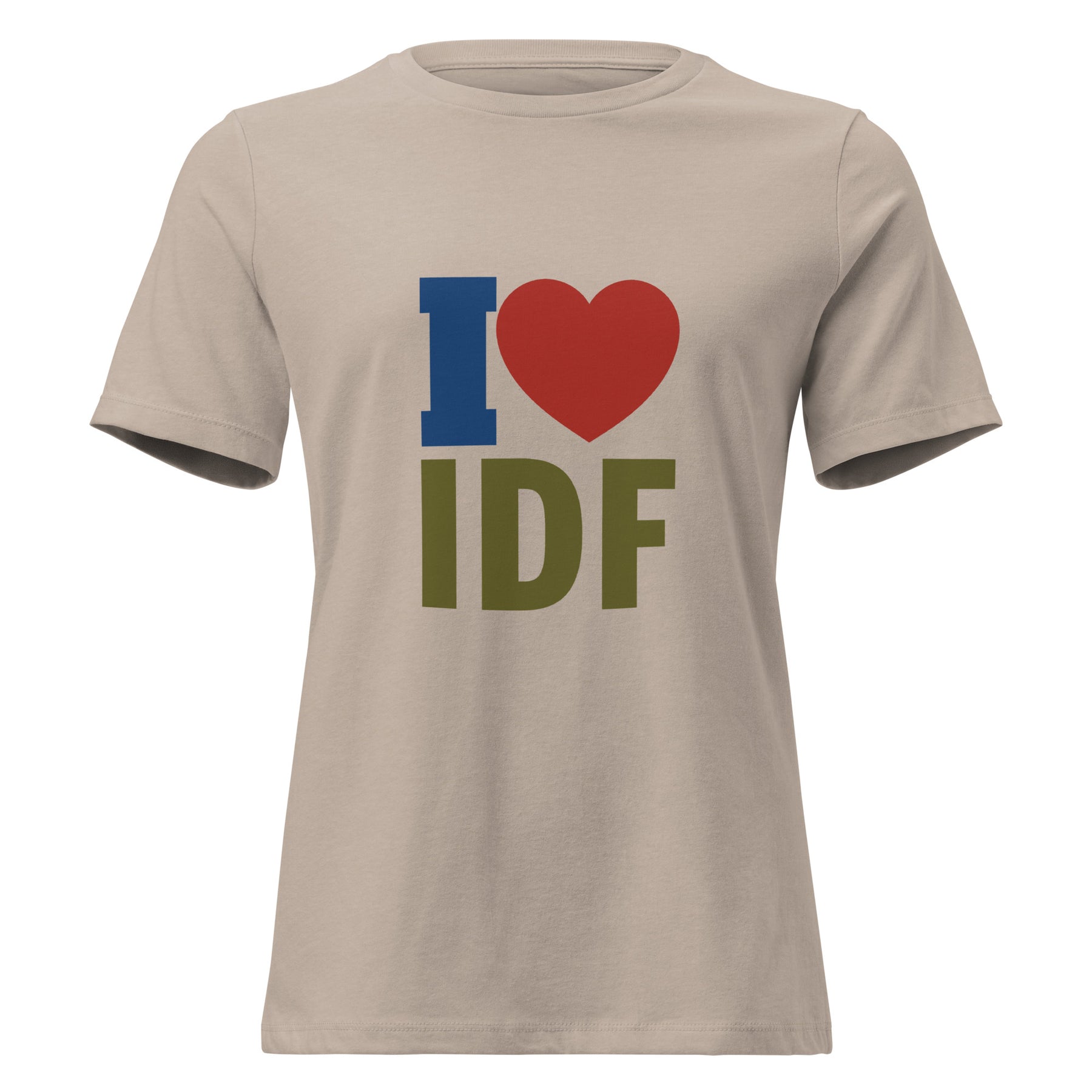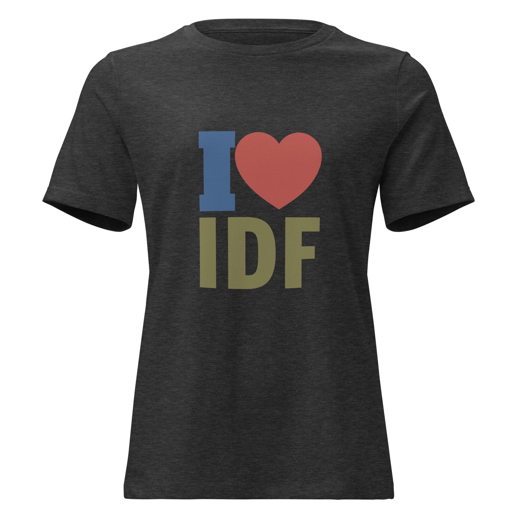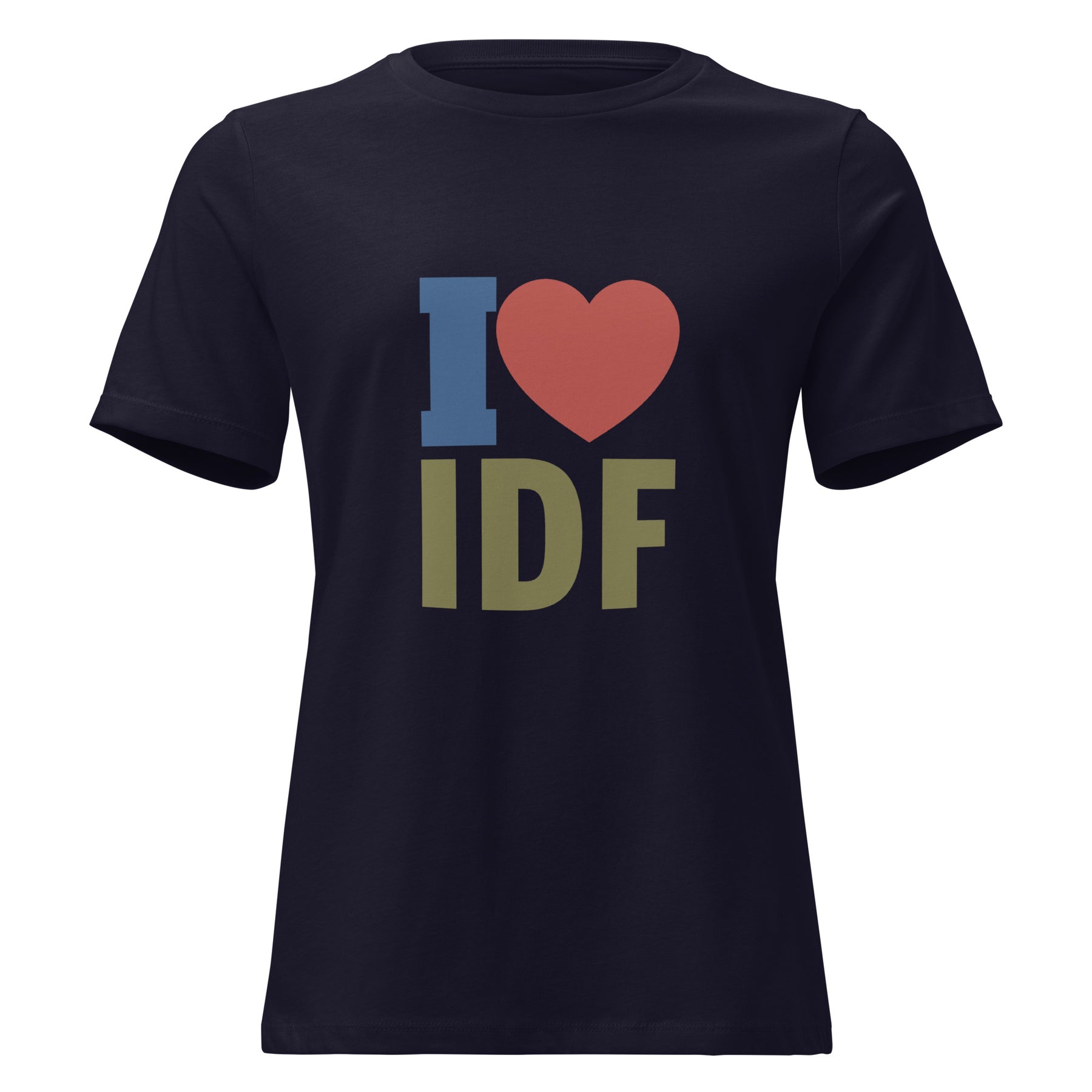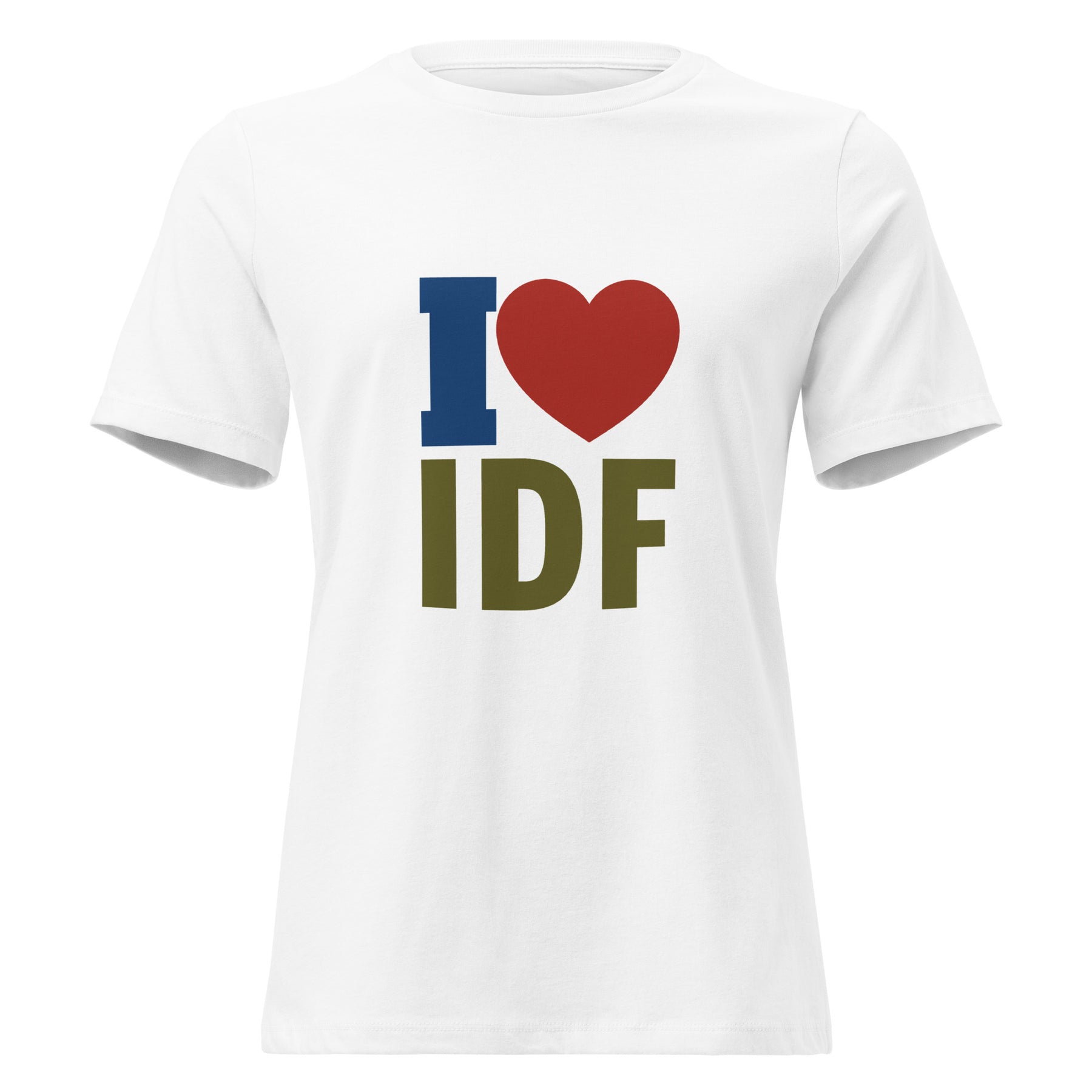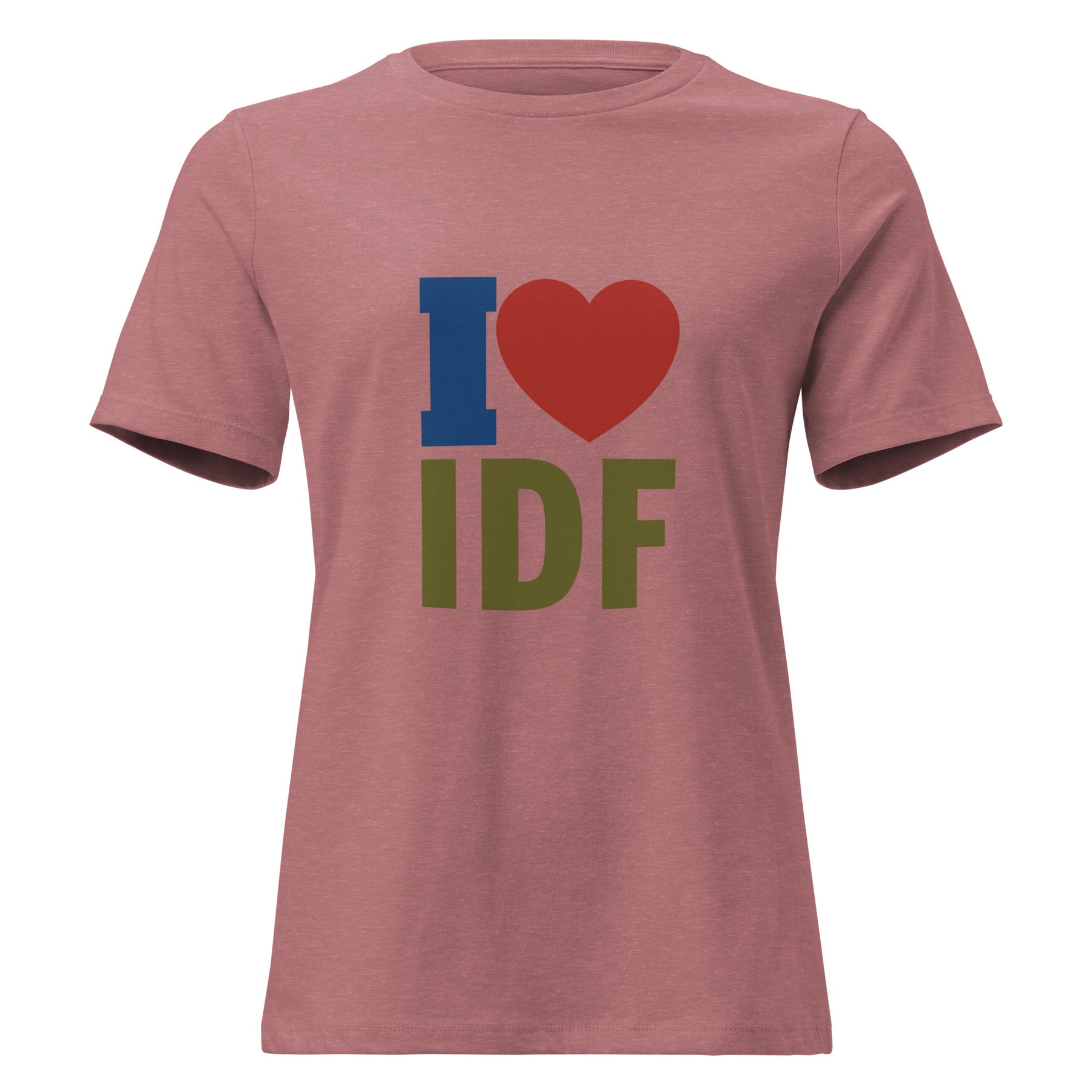 The Women’s Relaxed T-Shirt | I Love IDF perfectly blends comfort and confidence for women proudly standing with Israel’s defenders.