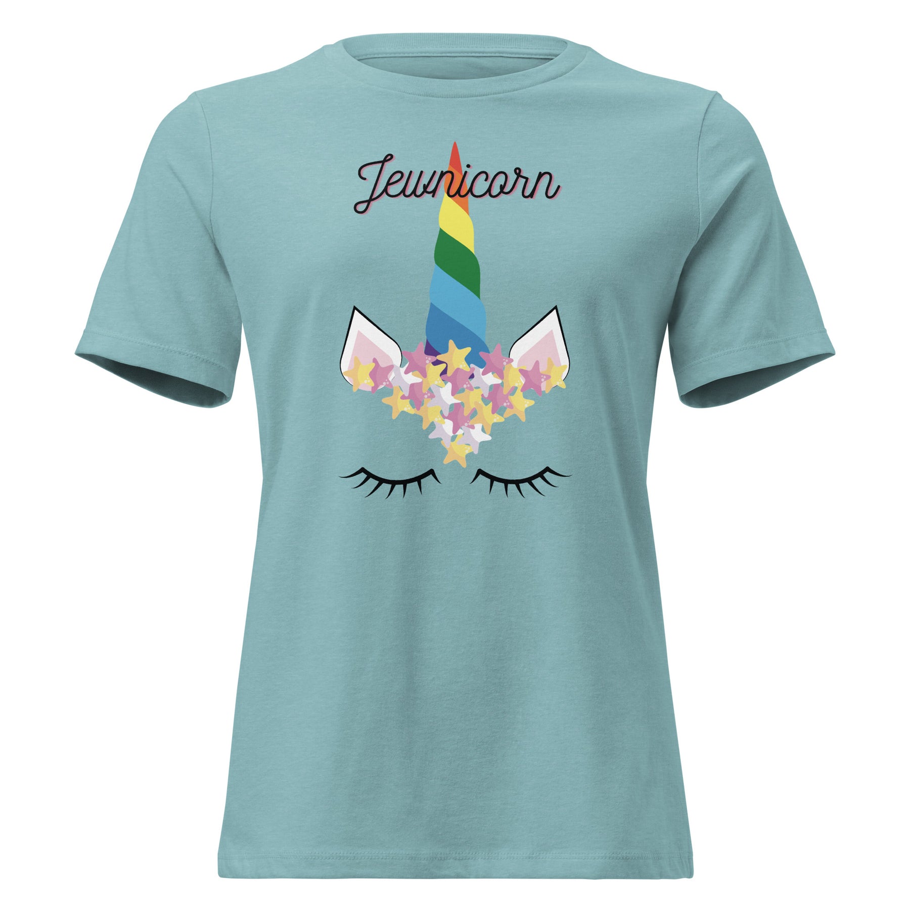 Bold, playful, and proudly Jewish — the Jewnicorn Women’s Relaxed T-Shirt is your new go-to for comfy, expressive style. With a vibrant unicorn design and a Star of David crown, this tee blends Jewish pride with magical vibes. It’s perfect for holidays, Pride, brunches, or everyday wear when you want to let your inner Jewnicorn shine.