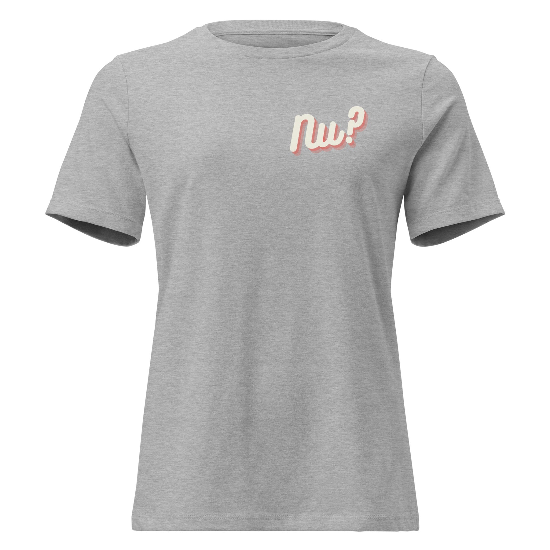 The Nu (נו?) Women’s Relaxed T-Shirt takes the most expressive little word in Jewish culture and lets it speak for itself. “Nu?” can be curiosity, impatience, encouragement, disbelief, or a gentle push forward. Sometimes all at once.