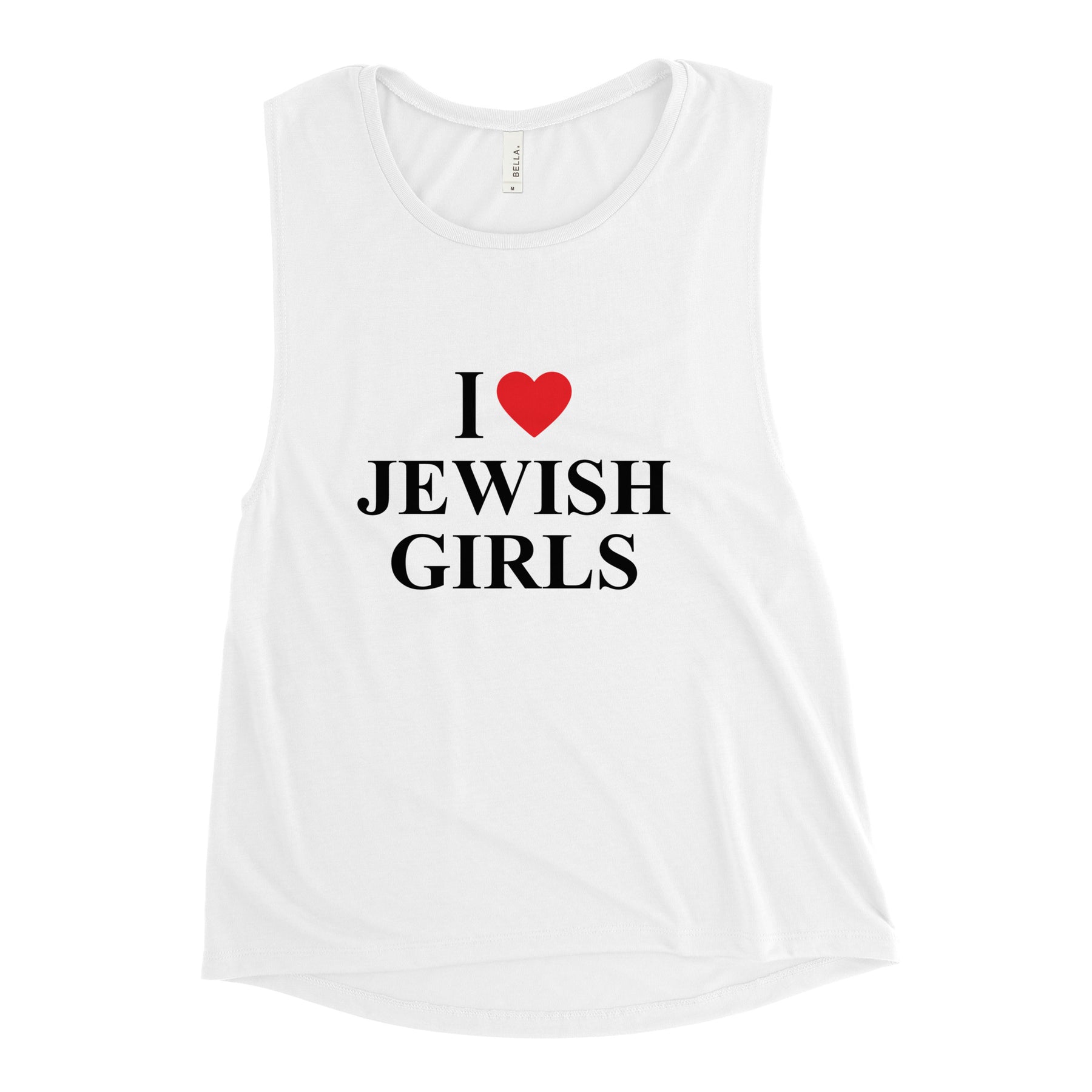 Fierce, flirty, and full of pride — this Women’s Muscle Tank features the bold and playful message: I Love Jewish Girls. Whether you’re making a statement of identity, affection, or cultural pride, this sleeveless top is the perfect mix of empowerment and fun.