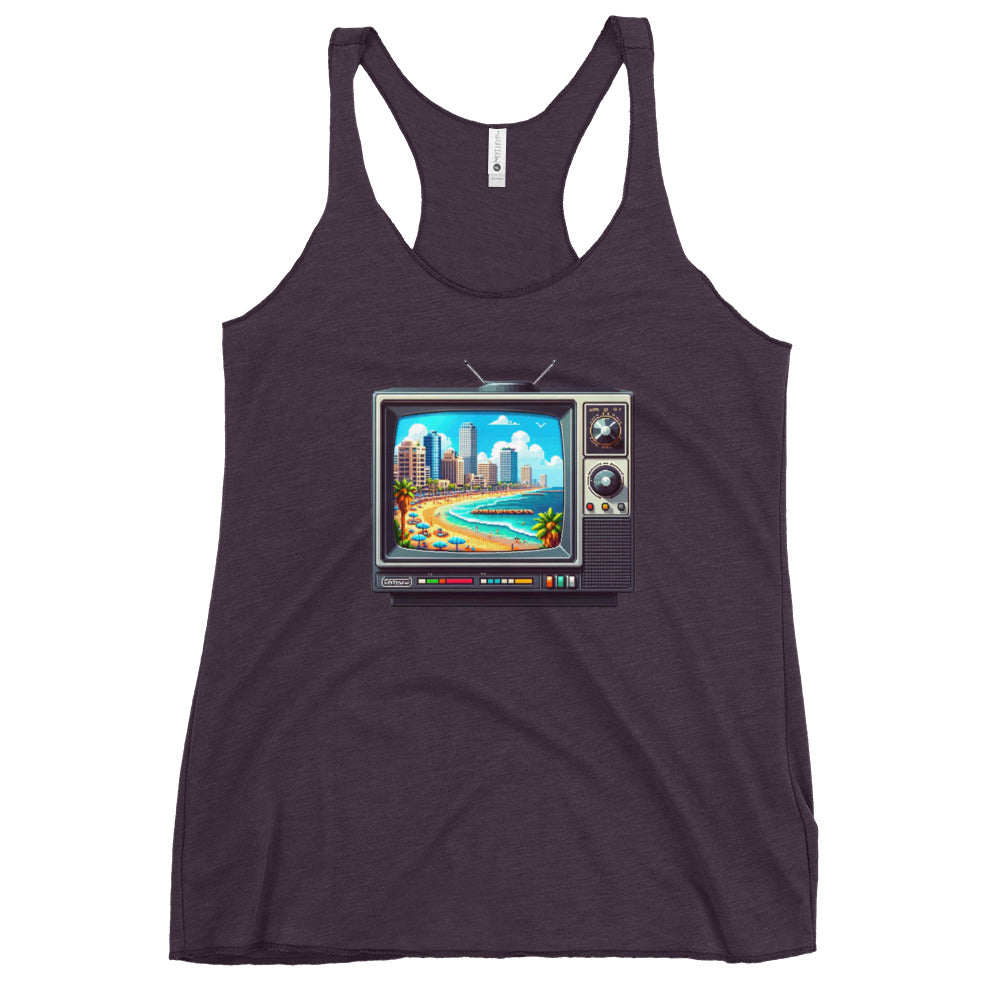 Show off your love for Tel Aviv with our Women’s Racerback Tank featuring a cool 16Bit Tel Aviv Beach design on a vintage TV. Perfect for the retro gaming vibe! 🌴🎮 #TelAviv #RetroStyle